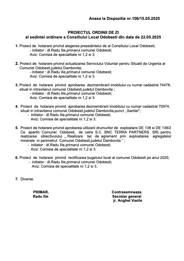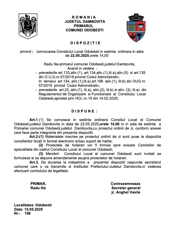 PRIMĂRIA ODOBEȘTI – CONVOCATOR de STIRI TARGOVISTE DAMBOVITA 16 mai 2025 16 mai 2025 103 16 Postează pe Facebook 0 comentarii postarea anterioară FIENI: DEMERS PENTRU REÎNTOARCEREA LA TRADIȚII următoarea postare Prinde contur centura rutieră a Orașului Găești! You may also like ANUNT 1 8 noiembrie 2025 Pista pentru bicicliști- investiție așteptată cu interes la... 8 noiembrie 2025 Important pentru cetățenii comunei Finta: Reduceri la impozitele... 7 noiembrie 2025 Comunicat 7 noiembrie 2025 Lasă un Comentariu Anulează Răspunsul Save my name, email, and website in this browser for the next time I comment.