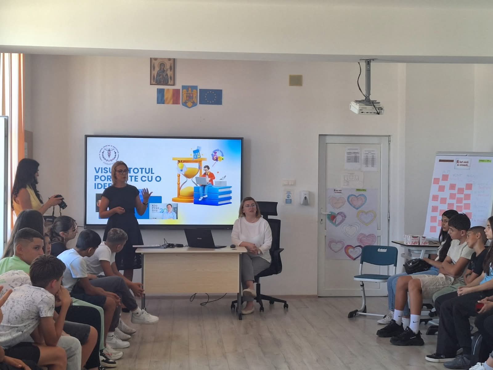 Ștefania Stroică- director general, și Simona Dodan le-au explicat copiilor cum un vis poate deveni o afacere de succes, că este nevoie de creativitate și curaj! Cum educația financiară deschide drumul spre responsabilitate și independență.