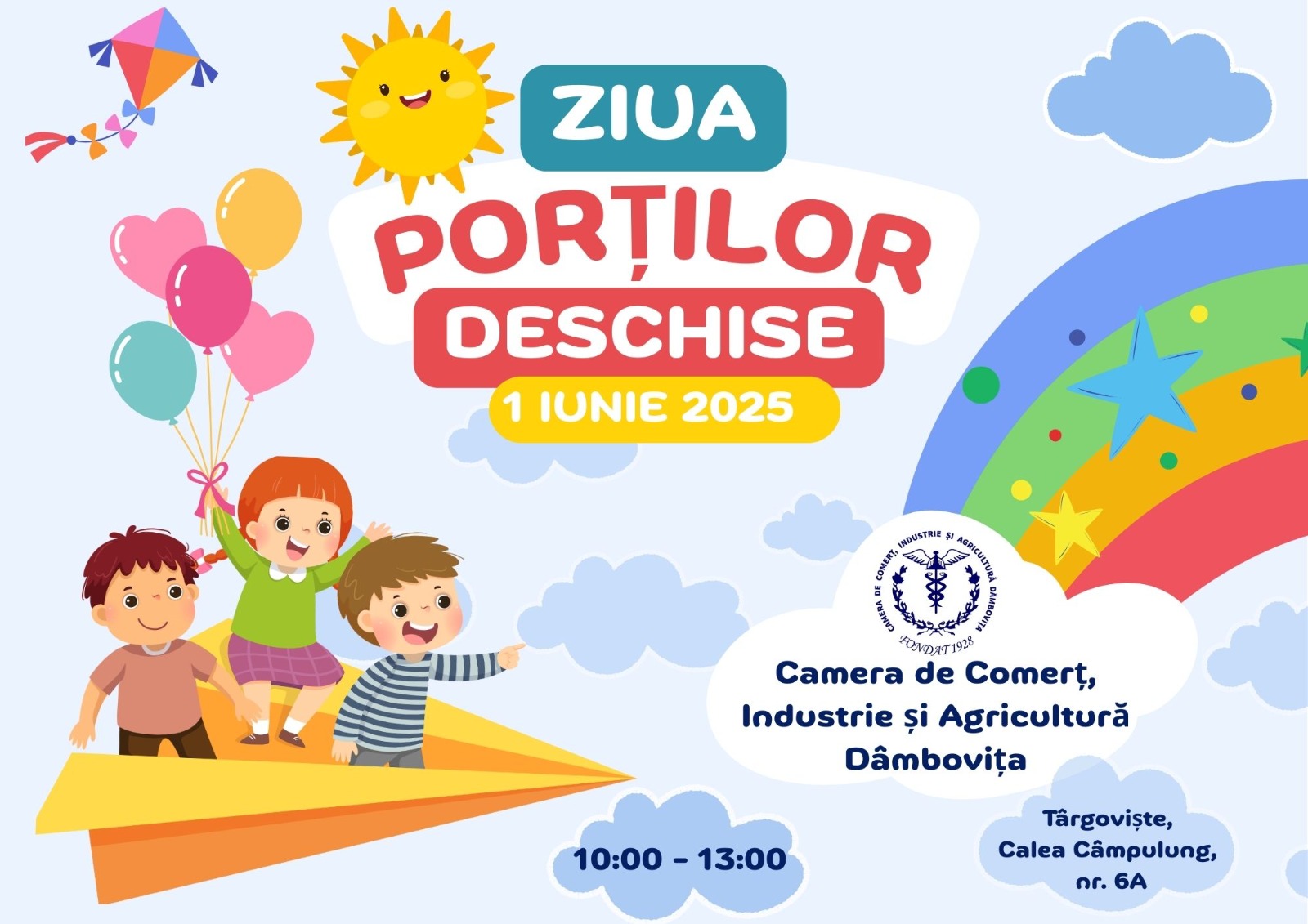 Duminică – 1 iunie 2025, la Camera de Comerț și Industrie Dâmbovița va fi din nou „Ziua porților deschise”. Copiii sunt așteptați să participe activ la activități distractive și cu componentă educativă, între orele 10:00 și 13:00, astfel: