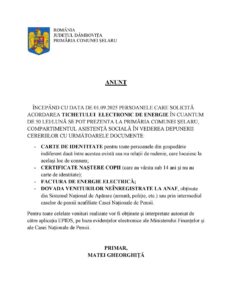 Primăria Șelaru acordă cetățenilor asistenți pentru obținerea tichetelor pentru energie de adrian 28 august 2025 28 august 2025 54 Postează pe Facebook 0 comentarii postarea anterioară Primarul Marian Alexandru a semnat ordinul de începere a lucrărilor la rețeaua de gaze din Conțești! Luni, 1 septembrie, constructorul va executa primele săpături! următoarea postare Primăria Pietrari deschide un centru after-school în satul Șipot You may also like ANUNT 1 8 noiembrie 2025 Pista pentru bicicliști- investiție așteptată cu interes la... 8 noiembrie 2025 Important pentru cetățenii comunei Finta: Reduceri la impozitele... 7 noiembrie 2025 Comunicat 7 noiembrie 2025 Lasă un Comentariu Anulează Răspunsul Save my name, email, and website in this browser for the next time I comment.