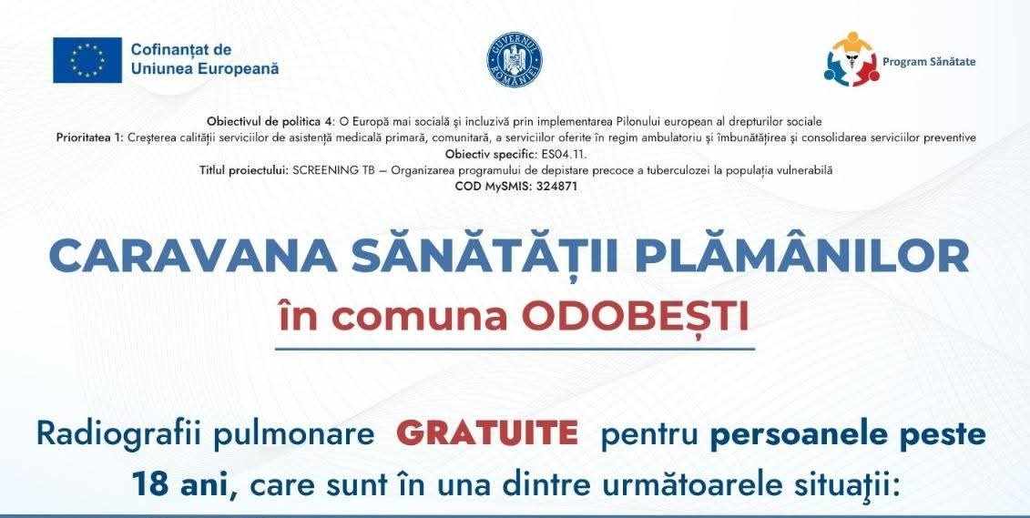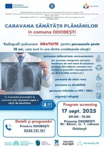 Acasă Fără categorieScreening gratuit pentru TBC și alte afecțiuni pentru cetățeni din Odobești